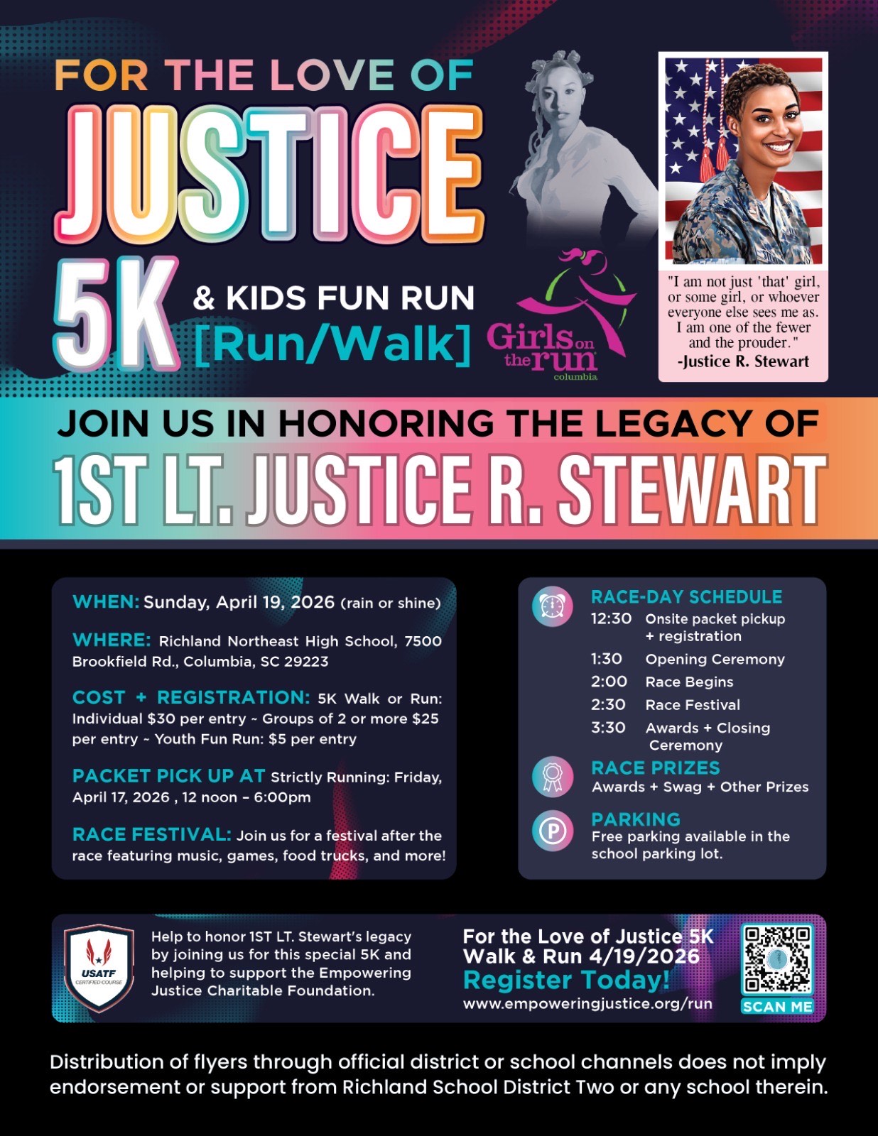| 4/19/2026 | For the Love of Justice Memorial Run | 5k | Columbia | Tia Jones | 803/805-2525 |