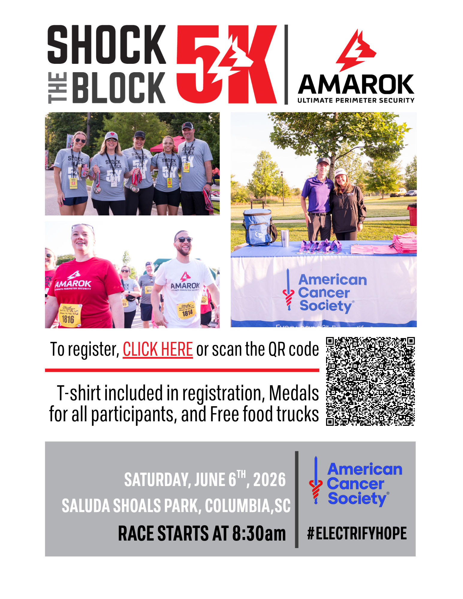 | 6/6/2026 | Shock the Block 5k: Presented by AMAROK | 5k | Irmo | Ronnie Stewart | 803/904-2196 |